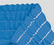 El hilo elástico es recto, no en bucle, que se fija con hilo de aguja e hilo de bucle. El acabado es más delgado que VPQ y el fruncido se vuelve plano a medida que se tira de él ampliamente.